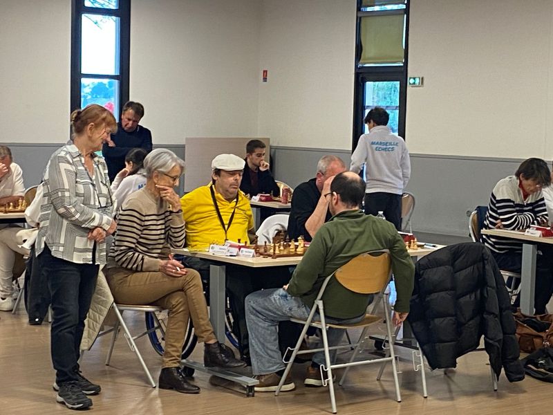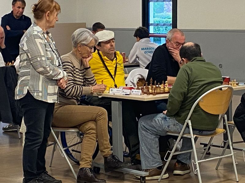 Puis vient le temps du jeu, les parties s’enchaînent toute la journée, les combats font rage ! Marseille échecs 1 et l’Echiquier du roi René montrent très vite qu’ils ne sont pas venus pour faire figurants et enchaînent les bons résultats.