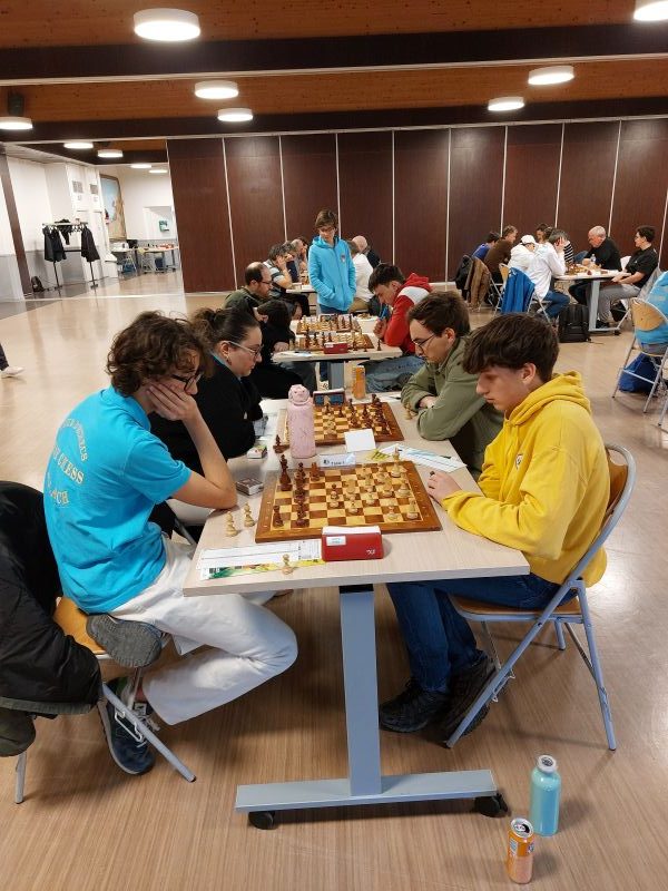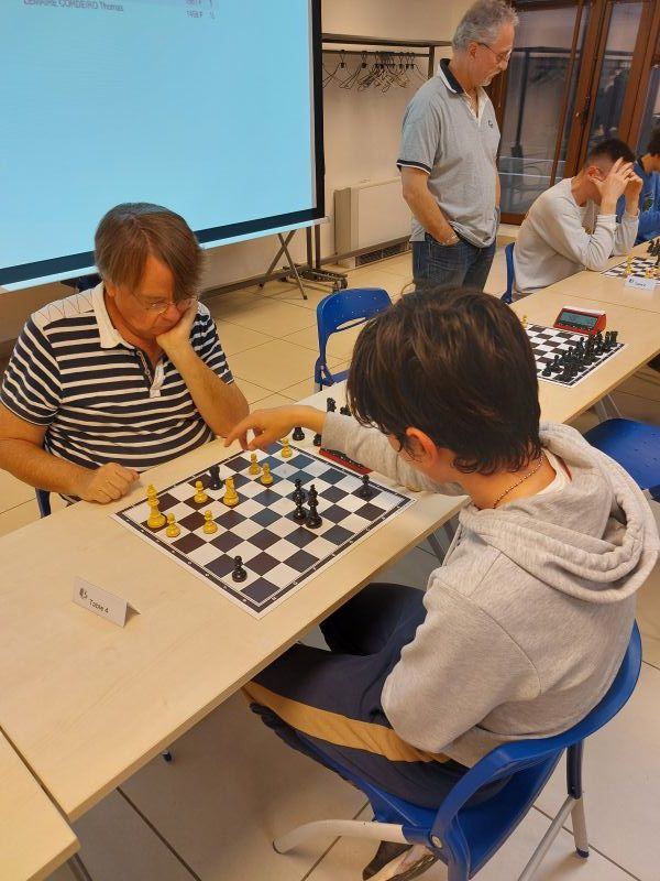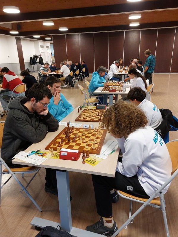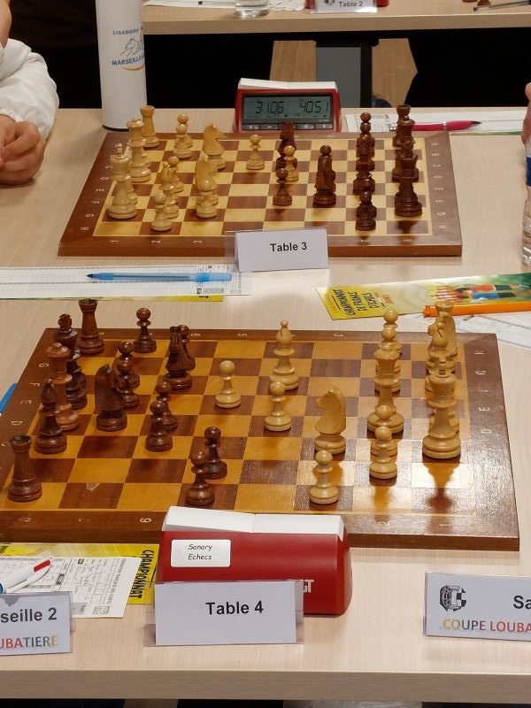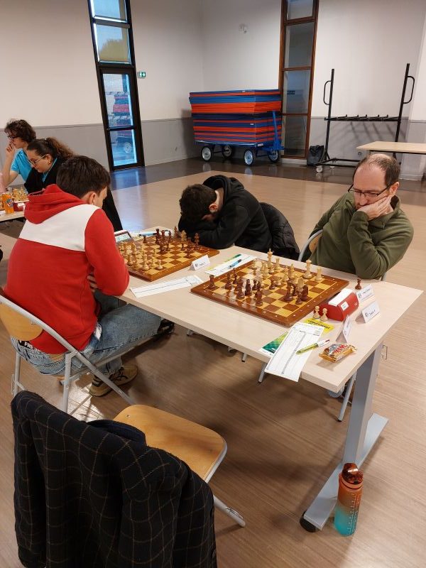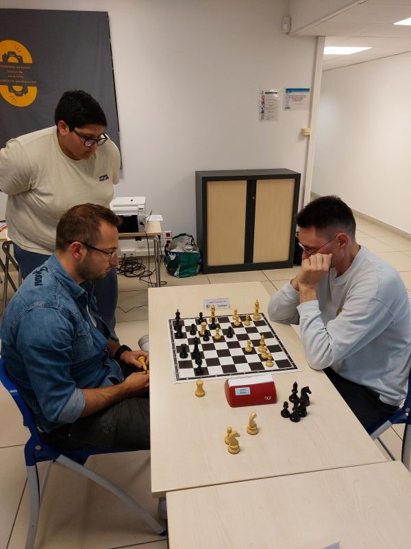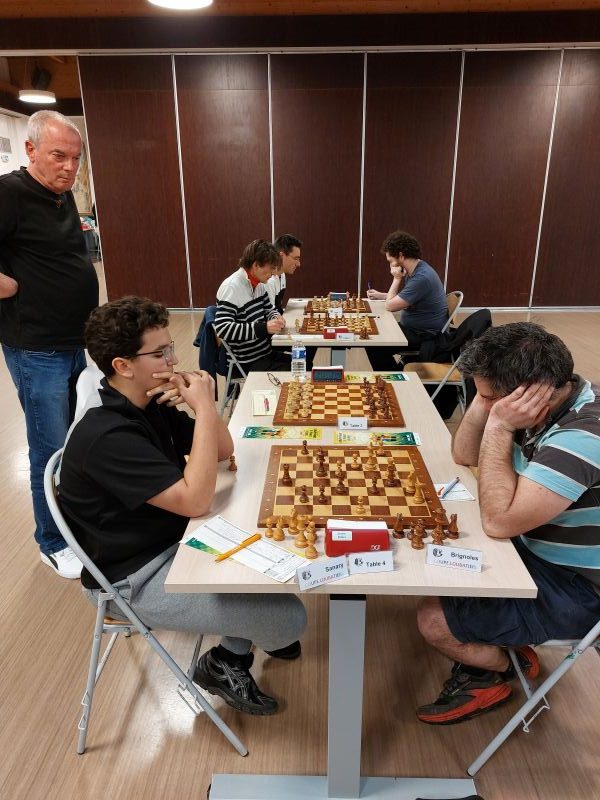 Nous enchaînons ensuite deux nulles 2/2 lors des deux rondes suivantes avec deux scénarii identiques, nos joueurs s’inclinant systématiquement contre les deux meilleurs joueurs adverses tandis que nous gagnons sur les deux autres échiquiers.