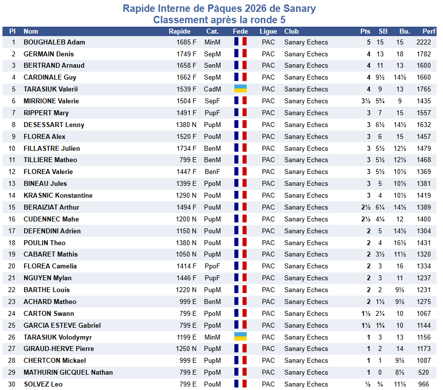 C’est la catégorie où nous alignons le moins de joueurs puisque seul Valérii était inscrit en U18, mais la qualité était au rendez-vous puisque Valérii se qualifie en terminant 5ème avec 4/7 !